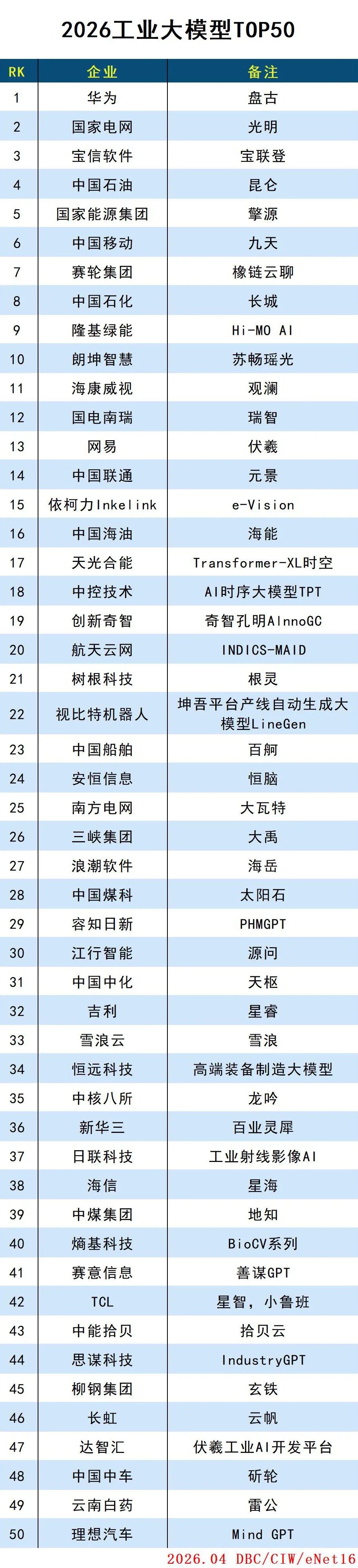 2026工业大模型TOP50