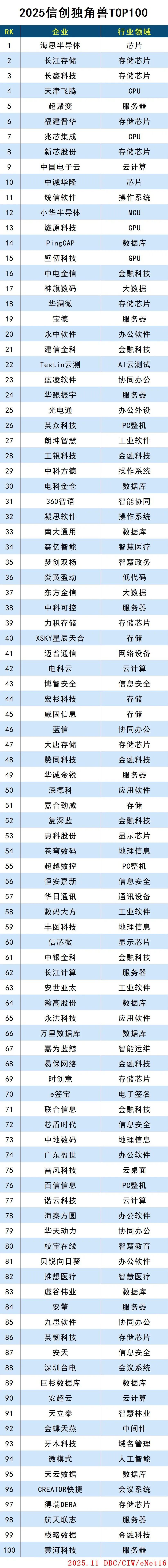 2025信创独角兽TOP100